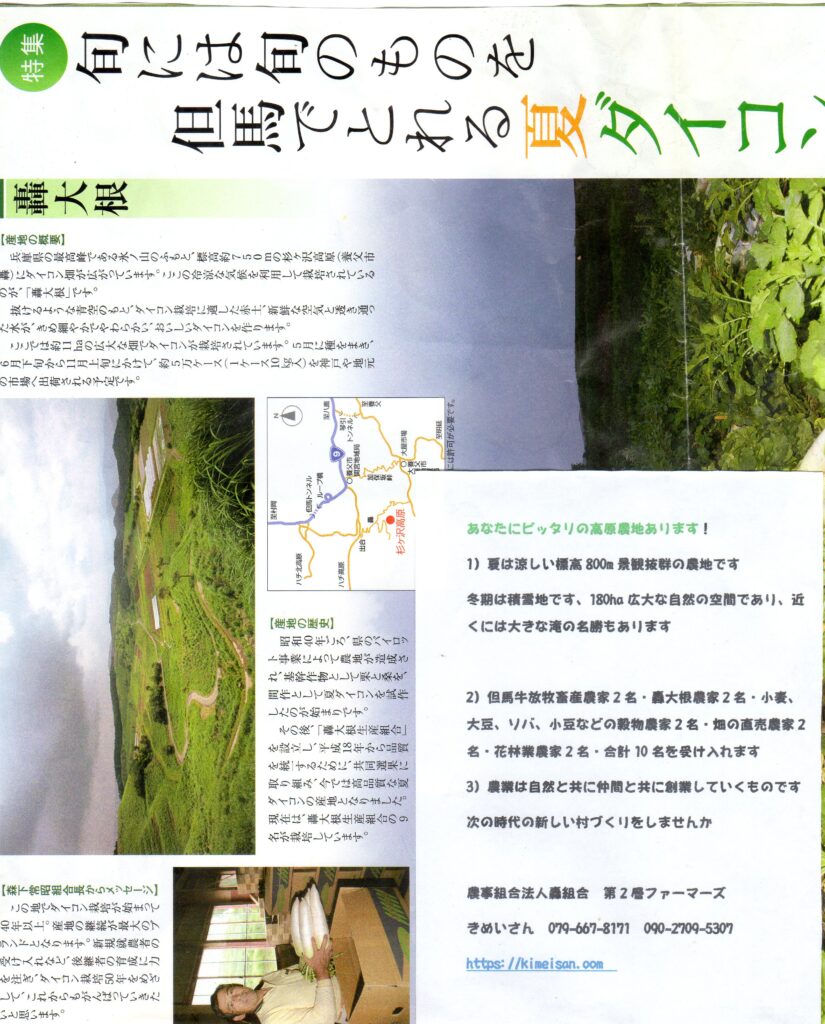 兵庫県養父市の農業復興を願い農業後継者づくりに将来独立して就農希望される農業求人を募集しています